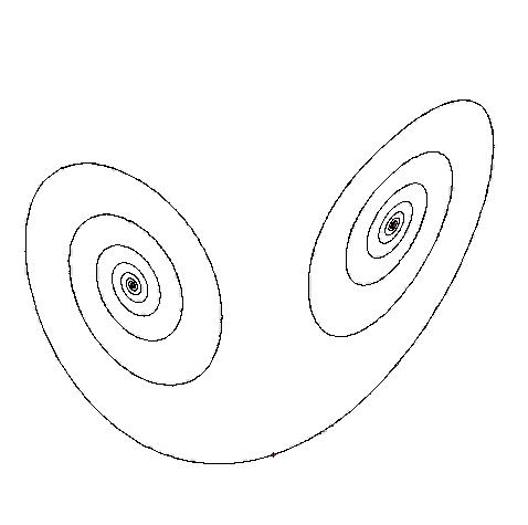 Duffing equation : strange attractor changing in time(bottom left)